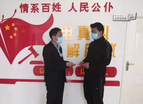 2021年5月,洛陽新安縣王某來到縣調(diào)解中心,要求調(diào)解他與葉縣籍鄭某拖欠工資一事。接案后,馬建英及時(shí)通知雙方到場學(xué)習(xí)法律法規(guī),以法調(diào)解、以情感人,最終鄭某當(dāng)場歸還了拖欠王某的工資。