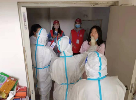 8:30,韓輝、郅欣、孫怡萍穿上志愿服、戴好口罩一起參加所在社區(qū)的志愿者活動(dòng),她們率先敲開(kāi)“居家隔離觀察”住戶的門(mén),協(xié)助核酸檢測(cè)人員做好核酸采樣。