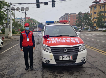 “項(xiàng)城市人民檢察院提醒廣大市民:當(dāng)前疫情形勢(shì)嚴(yán)峻,要嚴(yán)格落實(shí)疫情防控措施,人不出戶、車(chē)不上路。同時(shí)在小區(qū)內(nèi)也嚴(yán)禁進(jìn)行聚集、逗留等活動(dòng),如不聽(tīng)勸阻,將依法處理,并查扣交通工具。請(qǐng)廣大市民積極配合,共同打贏我市疫情‘防控戰(zhàn)’!”檢察干警集疫情防控宣傳員巡邏員處置員于一身,執(zhí)勤時(shí)間以外乘檢察宣傳巡邏車(chē)“漫步”在項(xiàng)城市中心城區(qū),不停地播放著提醒錄音,巡查違規(guī)出行車(chē)輛和人員,交相關(guān)部門(mén)處理。
