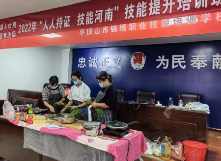 為深入貫徹省司法廳、平頂山市司法局關(guān)于《2022年高質(zhì)量推進社區(qū)矯正對象”人人持證、技能河南“建設(shè)工作方案》的要求,進一步做好社區(qū)矯正幫扶輔助工作,由葉縣司法局、葉縣人社局引入平頂山錦繡職業(yè)技能培訓(xùn)學(xué)校師資力量聯(lián)合舉辦本次培訓(xùn)。整個培訓(xùn)課堂座無虛席,培訓(xùn)內(nèi)容以烹飪理論與實際操作相結(jié)合的方式展開。技能培訓(xùn)老師講解通俗、操作熟練。社區(qū)矯正對象聽課專心、學(xué)習(xí)認(rèn)真。培訓(xùn)課上老師與社區(qū)矯正對象互動頻繁,社區(qū)矯正對象的學(xué)習(xí)熱情高漲,烹飪動手操作能力得到的極大提高。