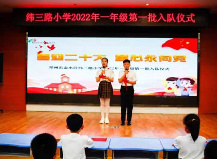 中新河南網5月31日電 為落實《中共中央關于全面加強新時代少先隊工作的意見》要求,做好少先隊組織的少年兒童政治啟蒙和價值觀塑造主責主業(yè),2022年5月30日下午,鄭州市金水區(qū)緯三路小學舉行一年級第一批少先隊員入隊儀式。