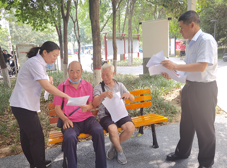 在紅色詩歌朗誦后,綜合管理部黨支部還開展了“打擊整治養(yǎng)老詐騙”宣傳活動。黨員同志給游園中的老年客戶群體發(fā)放宣傳折頁,通過金融詐騙等案例講解,讓老年客戶提高防范金融詐騙的警覺性,樹立較強(qiáng)的防范意識。
