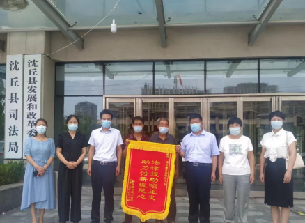 中新河南網(wǎng)8月4日電 2022年8月1日上午,17名受援農(nóng)民工代表將一面印有“法律援助昭正義,助力討薪暖民心”字樣的錦旗送到沈丘縣司法局黨委副書記、局長(zhǎng)吳桂馨手中,對(duì)法律援助律師盡職盡責(zé)為其成功追討拖欠工資一事表示感謝。