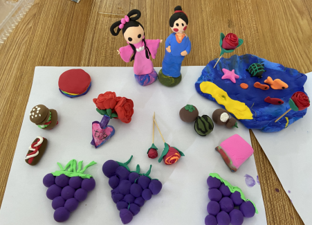 巧手慧心過七夕。七夕節(jié),又名乞巧節(jié),最開始是女孩們的節(jié)日。發(fā)展到今天,古為今用,孩子們用自己的方式來“乞巧”。一對(duì)靈動(dòng)的小泥人、一束束美麗的花朵、一個(gè)個(gè)生動(dòng)的水果……孩子們用一雙雙巧手加上童趣的演繹,借助黏土等多種形式,詮釋出七夕獨(dú)有的文化魅力。