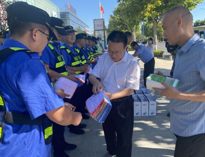 中新河南網(wǎng)8月15日電(雷倩 陳連平 梅夢潔)新蔡縣四個班子領導等慰問高溫下一線環(huán)衛(wèi)工人和部分城管執(zhí)法人員