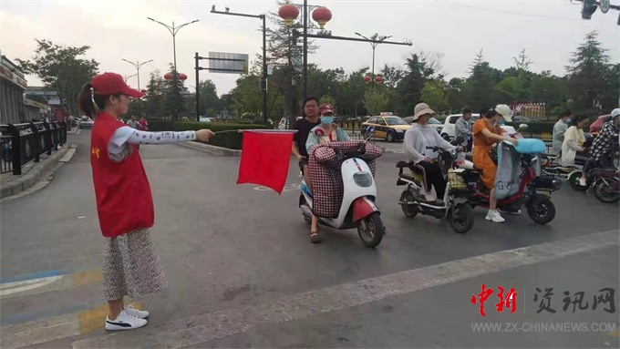 中新河南網(wǎng)6日30電(付海濤 毛新勇)2021年6月28日,開封市化建中學(xué)教師志愿者來到汴京大道與公園路十字路口交通崗,參加文明交通志愿服務(wù)活動(dòng),維護(hù)交通秩序,勸導(dǎo)不文明交通行為。