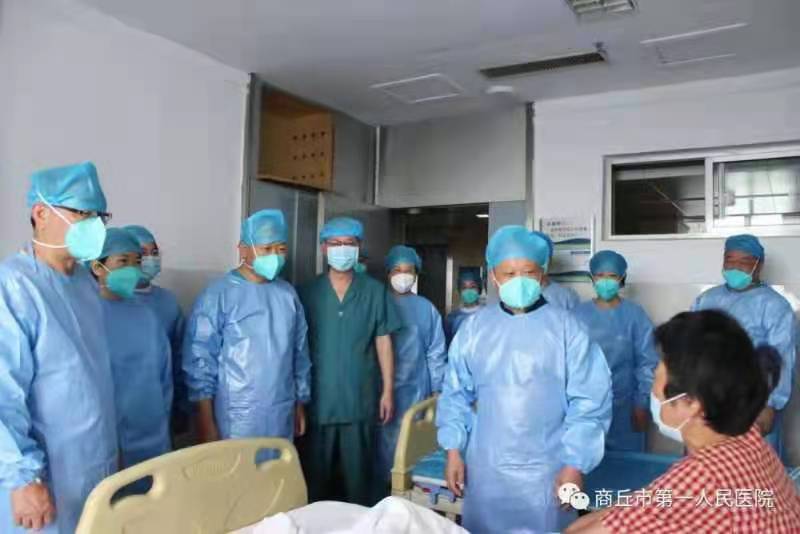 中新河南網(wǎng)商丘8月27日電(刁玉磊 通訊員 陳欽正 李嘯)今日,本網(wǎng)自商丘市第一人民醫(yī)院獲悉,8月26日上午,商丘市委派駐該院疫情防控工作組組長(zhǎng)、市衛(wèi)生健康委黨組成員、副主任王玉棟,商丘市第一人民醫(yī)院副院長(zhǎng)王雷等帶領(lǐng)相關(guān)科室負(fù)責(zé)人,分別到胸外科、內(nèi)分泌科、lCU病區(qū)、成人康復(fù)病區(qū)、兒童康復(fù)病區(qū)等,看望了值班醫(yī)務(wù)人員和部分在院患者,并送上了水果等慰問(wèn)品。