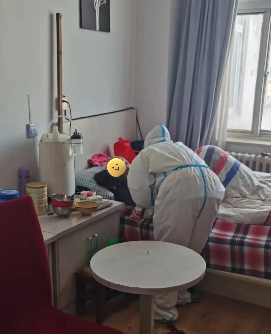 緊張的核酸采集從早晨9點持續(xù)到下午2點,結(jié)束核酸檢查后,李雪靜才吃上午飯。吃過飯后,社區(qū)工作人員說還有一個養(yǎng)老院需要采集,大概60多人,大部分都是臥床,行動不便的偏癱老人。