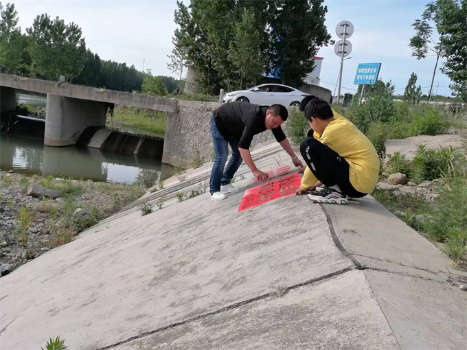 會議過后立即對校園及周邊水域的安全隱患開展拉網(wǎng)式大排查,余海校長頂著炎炎烈日到溝、渠、河邊、池塘邊進行水域隱患排查,并刷寫警示標(biāo)語。