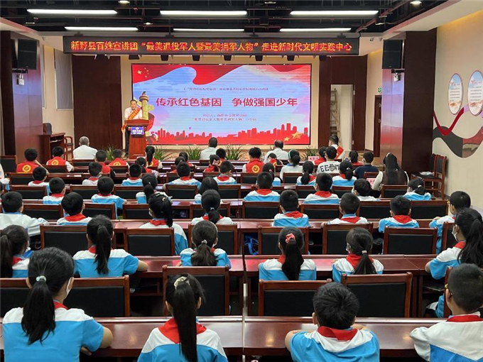 中新河南網(wǎng)9月19日電(李克選 何莉 惠曉陽)為廣泛宣傳退役軍人優(yōu)秀事跡,9月19日,新野縣“最美退役軍人暨最美擁軍人物”百姓宣講團(tuán)走進(jìn)新時(shí)代文明實(shí)踐中心開展宣講活動(dòng)。為團(tuán)結(jié)小學(xué)學(xué)生以線上、線下相結(jié)合的形式,講述了宣講員們感人至深的身邊故事,以別樣方式為學(xué)生們開啟了“開學(xué)第一課”。